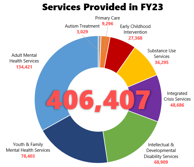 During fiscal year 2023 (September 1, 2022 - August 31, 2023), the Center operated thirty-two offices, residential settings, campus-based programs, transitional home and program sites.