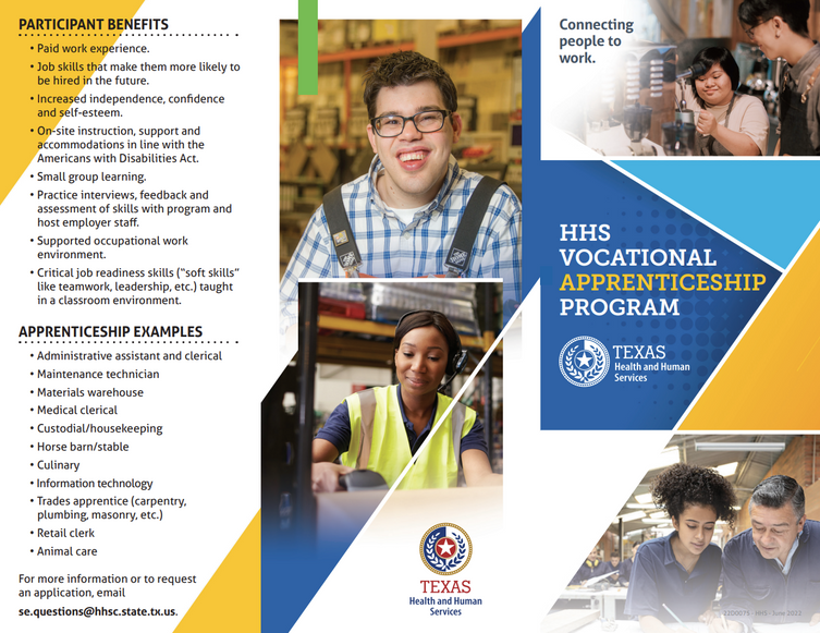The BTCS Vocational Apprenticeship Program, available in Caldwell and Guadalupe Counties, allows participants with intellectual, developmental and/or mental health challenges to earn a wage while completing apprenticeships in real work environments, learning skills to gain and maintain competitive, integrated jobs.