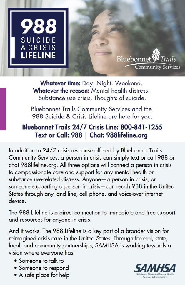 This expansion ensures more 988 calls from Texans are answered by a call center based in Texas, with knowledge of community resources and how to access local supports.